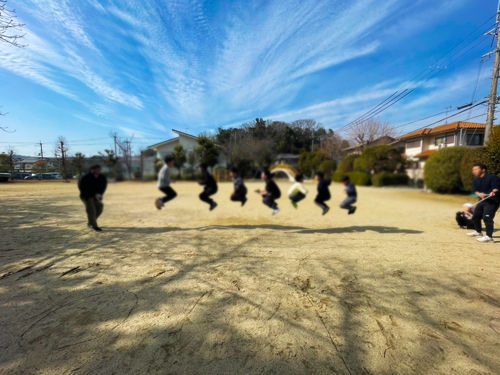 先週の厳しい寒さがゆるんで今日は春のような陽気の中、公園で体幹トレーニングを行いました。